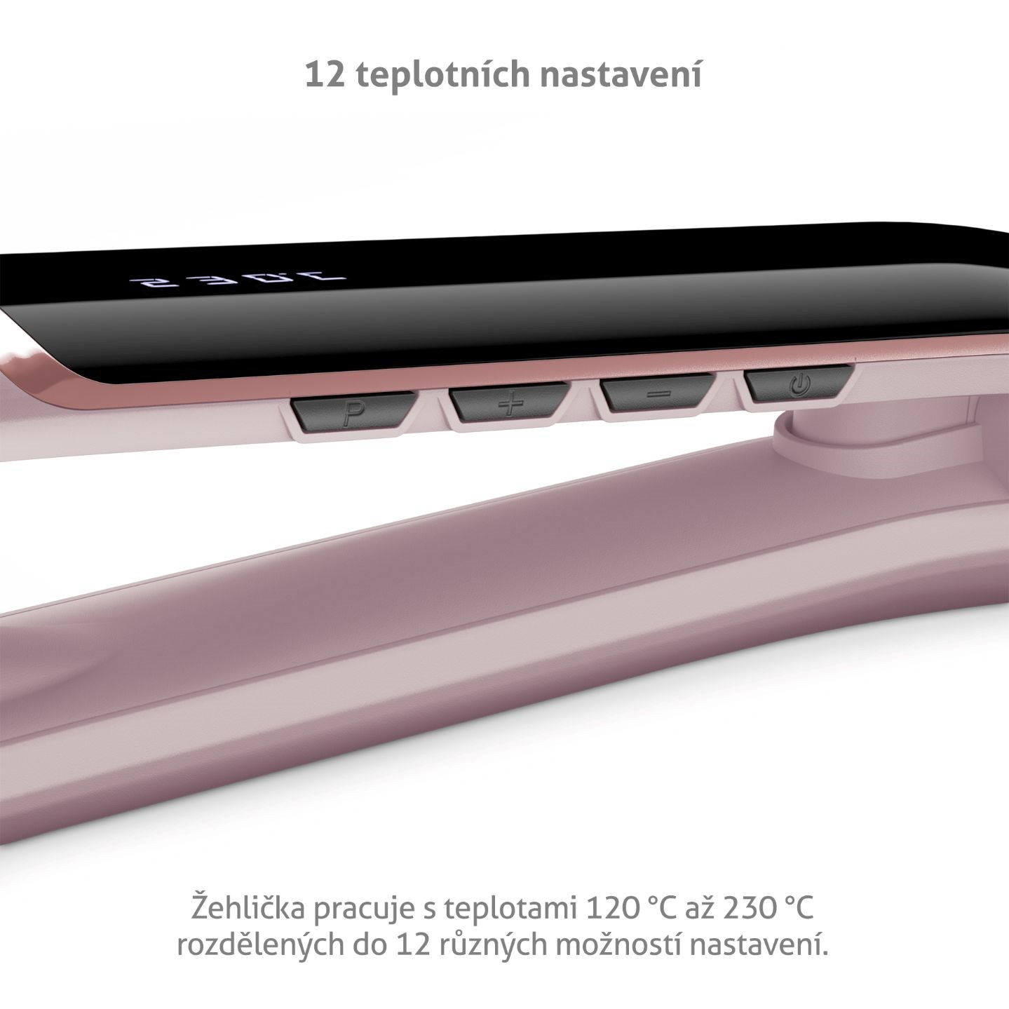 Žehlička pracuje s teplotami od 120 °C do 230 °C rozdelenými do 12 rôznych možností nastavenia.
