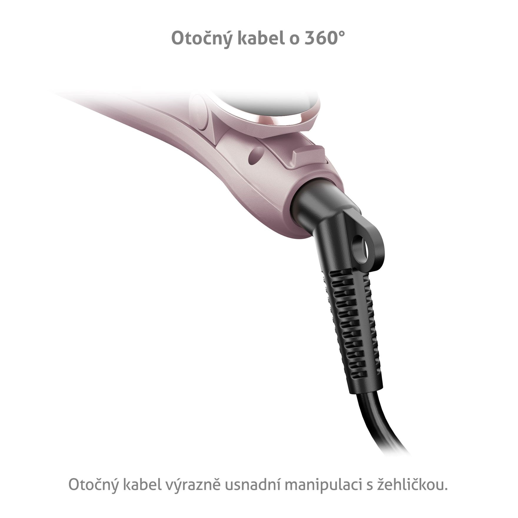 Manipuláciu so žehličkou uľahčuje kábel otočný o 360°. Vďaka tomu je úprava vlasov oveľa pohodlnejšia.