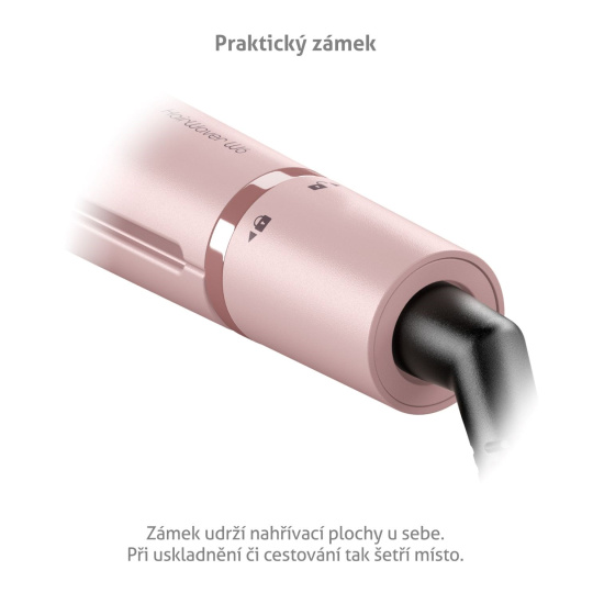 Trojkulma je vybavená zámkom, ktorý umožňuje uzamknúť nahrievacie plochy, takže kulma pri skladovaní alebo cestovaní zaberá minimum miesta.