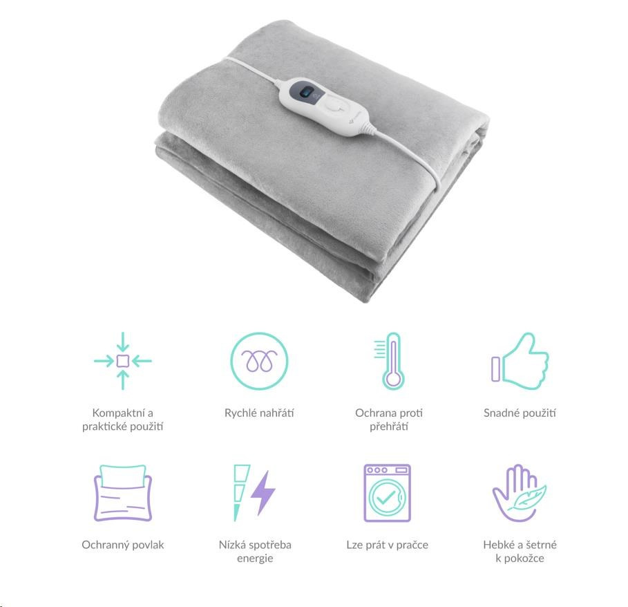S káblom dlhým 3,3 m nemusíte používať predlžovačku ani presúvať nábytok. Prikrývka bez problémov dosiahne aj na vzdialenejšiu zásuvku.