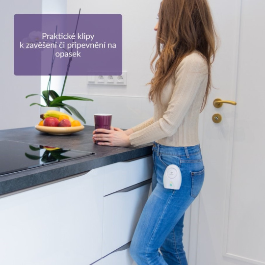 Obe jednotky majú praktický klip, ktorý slúži na zavesenie či pripevnenie na opasok. S opatrovateľkou sa tak môžete pohodlne pohybovať.