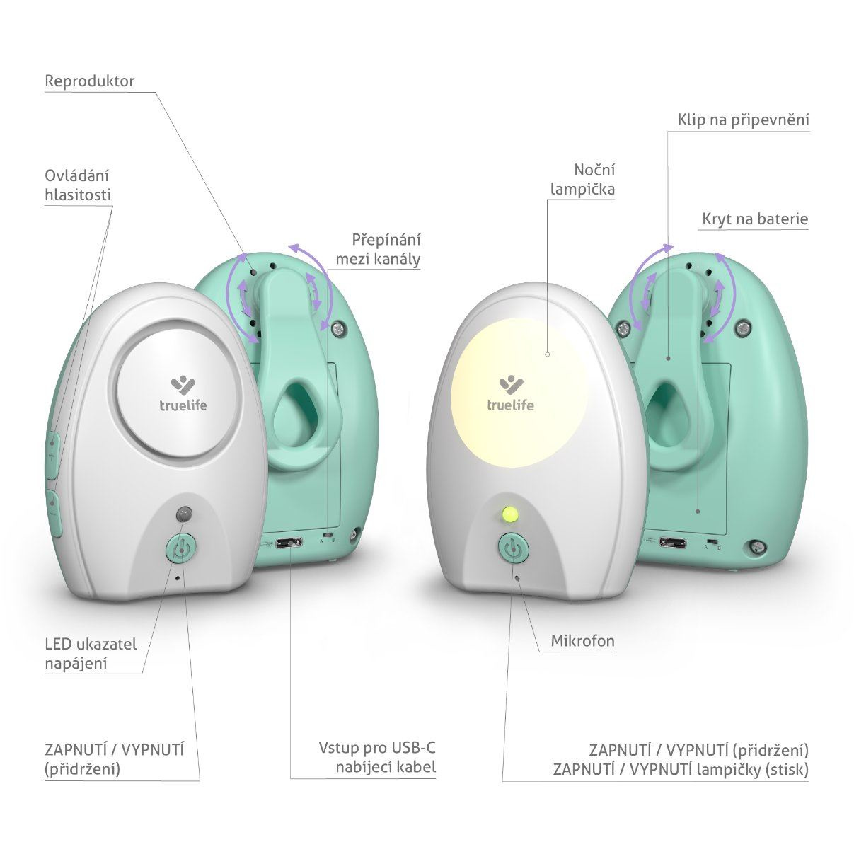 TrueLife NannyTone VM Pocket – Digitálna audio opatrovateľka s dobíjacími jednotkami