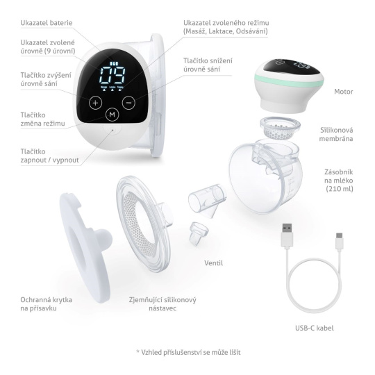 Celistvé prevedenie odsávačky, kedy vám nezavadzajú zbytočné hadičky a externé fľaštičky, z nej robí dokonalú výpomoc aj na cesty. Odsávačka je vybavená elektrickou pumpou a odsávanie tak prebieha automaticky do nádoby s objemom 210 ml, z ktorej mlieko pohodlne prelejete do fľaše a uskladníte na neskôr. Priloženie prístroja na prsník bude pre vás príjemné vďaka jemnému silikonu nadstavca a zároveň bezpečné, je totiž vyrobený z nezávadného plastu bez obsahu BPA. Odsávanie je možné vykonávať aj vtedy, keď dieťa nie je hladné, ale prsia sú naplnené materským mliekom.