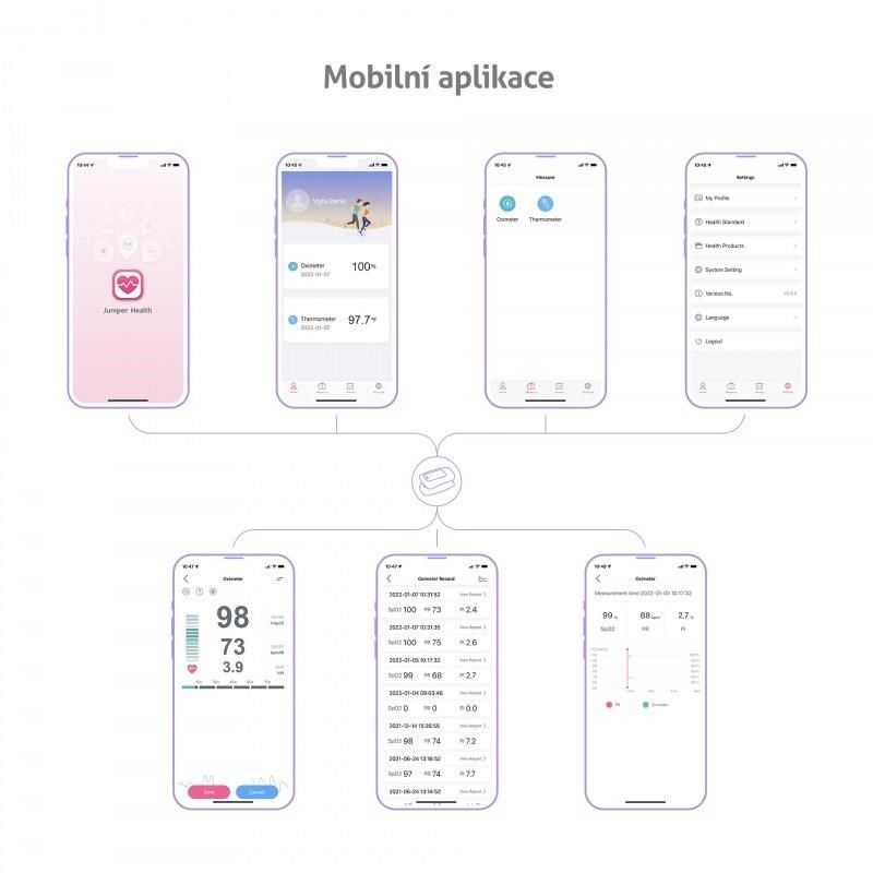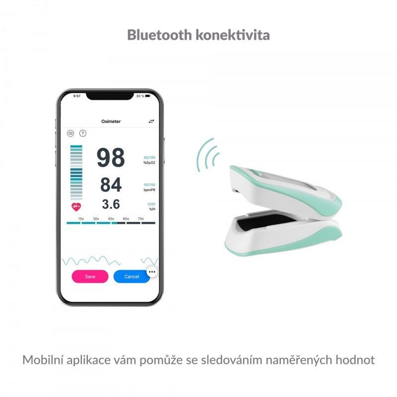 Vďaka zabudovanému Bluetooth je možné oximeter spárovať so smartfónom a hodnoty merania uchovávať v mobilnej aplikácii.