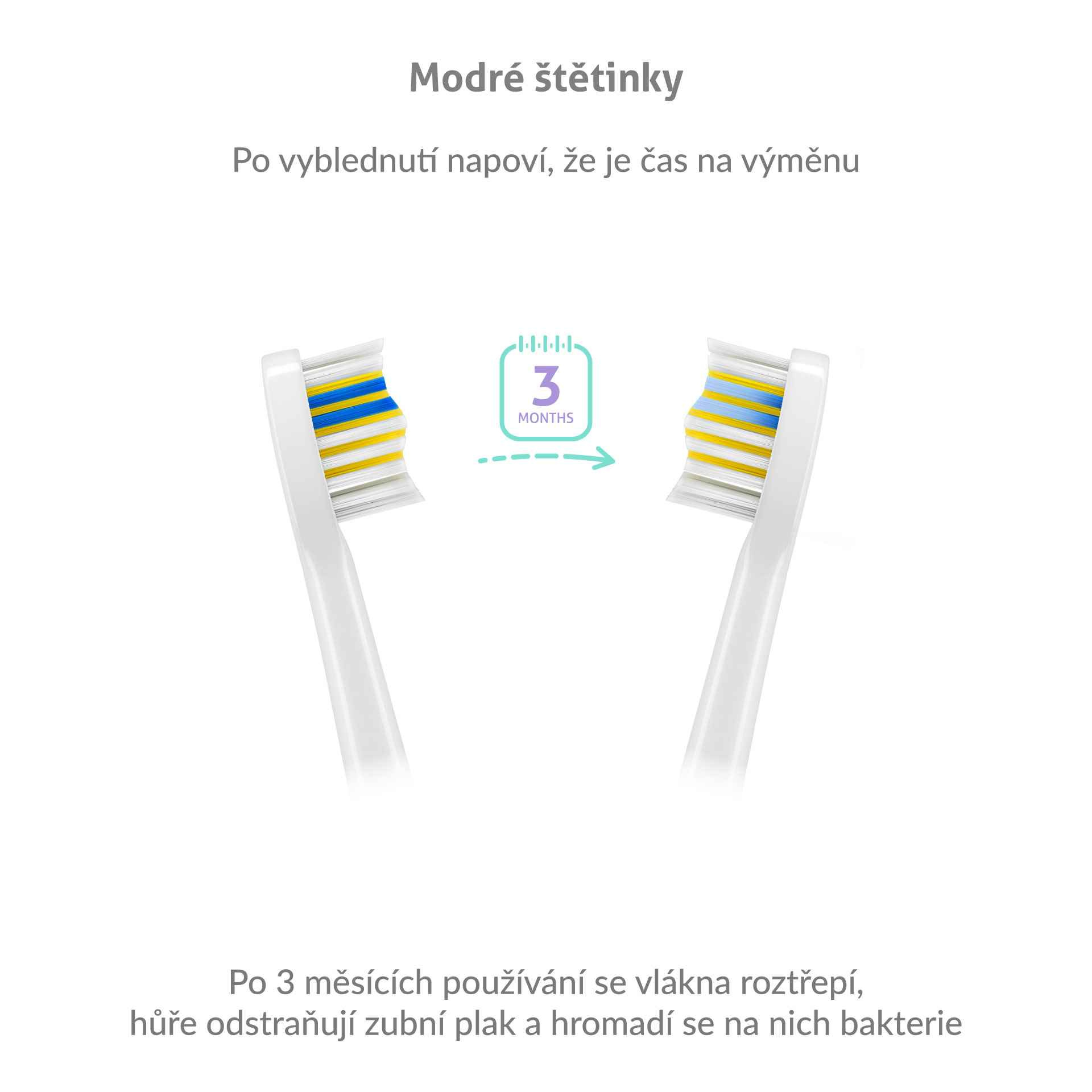 Hlavice disponujú modrými štetinkami, ktoré indikujú mieru opotrebenia. Jednoducho spoznáte, že je na čase hlavicu vymeniť.