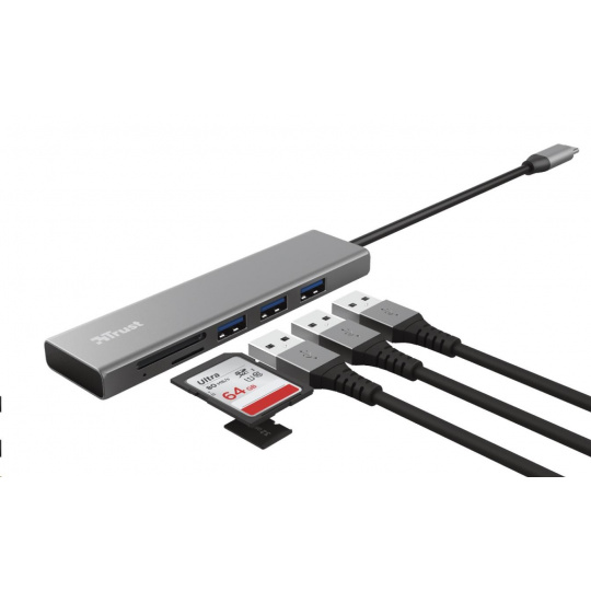 Rozbočovač TRUST HALYX, rýchly rozbočovač USB-C a čítačka kariet