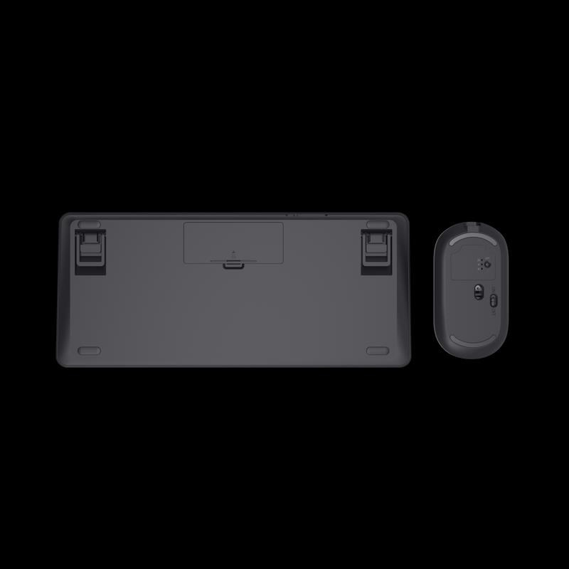 Bezdrôtová a nabíjateľná kompaktná sada klávesnice a myši s pripojením pre viacero zariadení