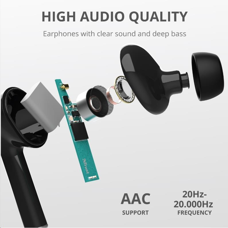TRUST sluchátka Nika Touch Bluetooth Wireless Earphones - black