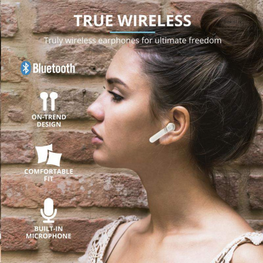 TRUST sluchátka Primo Touch Bluetooth Wireless Earphones - white
