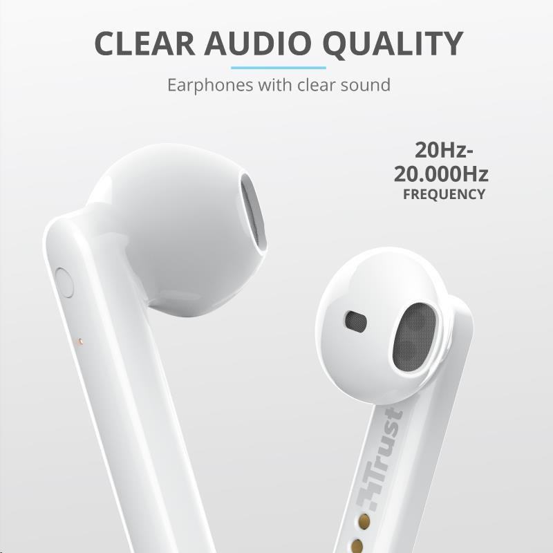 TRUST sluchátka Primo Touch Bluetooth Wireless Earphones - white