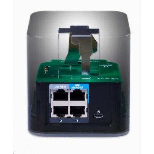 napájanie smerovača je možné riešiť jednak prostredníctvom napájacieho adaptéra, ktorý nie je súčasťou balenia, a jednak prostredníctvom 24V pasívneho injektora zapojeného do portu LAN, ktorý umožní napájať vonkajšiu jednotku, ako je napr.loco, PowerBeam, NanoBeam a ďalšie klientske jednotky.