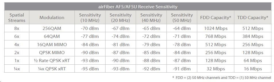 airFiber AF5/AF5U Receive Sensitivity