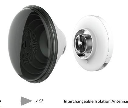 zariadenie IsoStation možno používať s rôznymi sektorovými anténami Ubiquiti s rohom. Obmedzením nežiaduceho vyžarovania a bočných lalokov je možné umiestniť niekoľko týchto jednotiek na malom priestore bez toho, aby sa navzájom rušili, čo umožňuje využiť ich plný výkon.