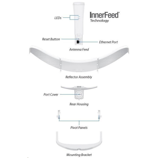 LiteBeam 5AC-LR spája patentované hardvérové a softvérové technológie do cenovo dostupného zariadenia. Medzi výhody patrí technológia InnerFeed, protokol airMAX TDMA, vylepšené uchytenie a zabudovaná vodováha na veľmi rýchle a správne nasadenie, ako aj veľmi kompaktné rozmery na úspornú prepravu.