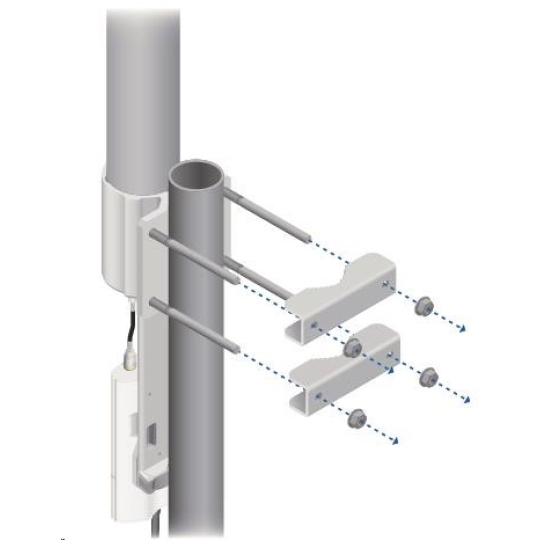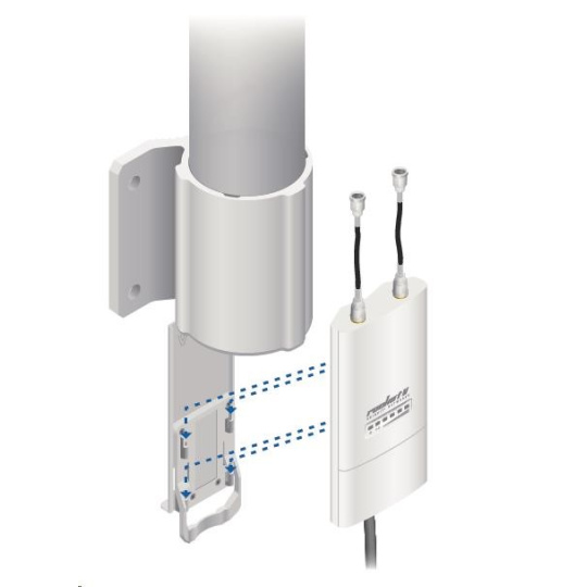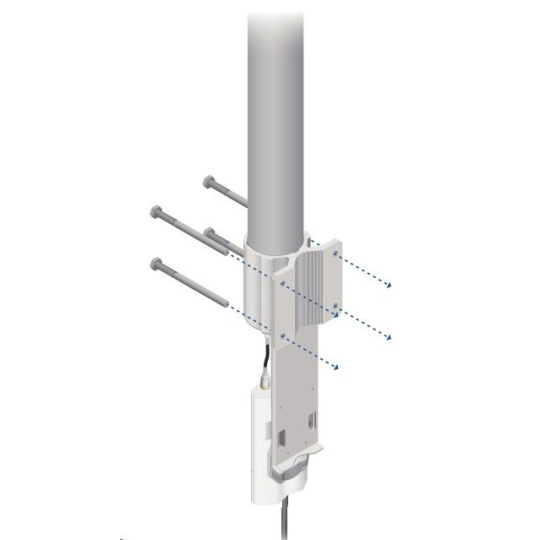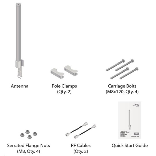 je to robustné 13dbi všesmerové anténne riešenie pre prístupové body pracujúce v pásme 2.4GHz a pomocou 802.11n v kombinácii s technológiou MIMO. Anténa má dva konektory RSMA typu žena. Súčasťou dodávky sú dva vodotesné pigtaily RSMA na pripojenie k jednotke Rocket M2, držiak pre túto jednotku a montážna súprava na stožiar, pozri. obr.