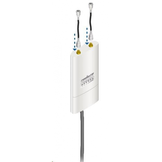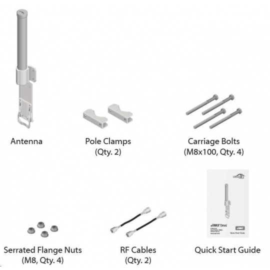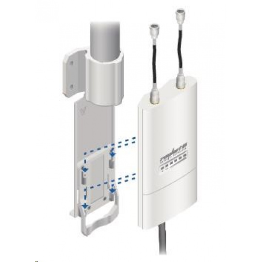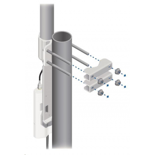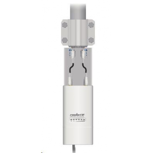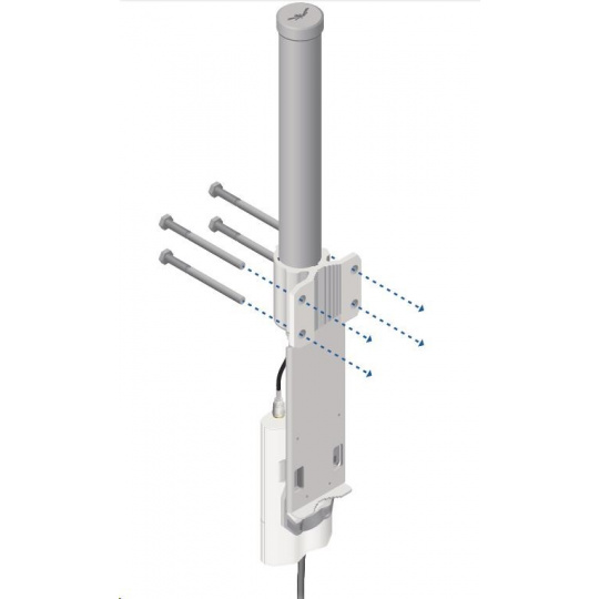 ide o robustné 10dbi všesmerové anténne riešenie pre prístupové body pracujúce v pásme 5 GHz a využívajúce štandard 802.11n v kombinácii s technológiou MIMO. Anténa má dva konektory RSMA typu žena. Súčasťou dodávky sú dva vodotesné pigtaily RSMA na pripojenie k jednotke Rocket M5, držiak pre túto jednotku a montážna súprava na stožiar, pozri. obr.