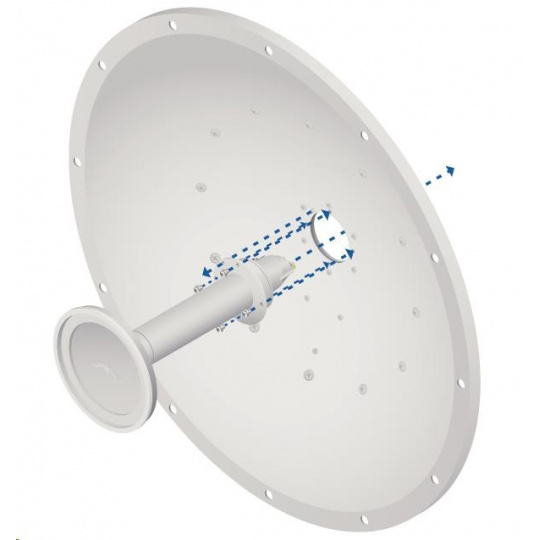 dvojpolarizačná 5GHz anténa so ziskom 30 dBi vhodná pre jednotku Rocket M5. Využíva horizontálnu aj vertikálnu polarizáciu, čím nahrádza dve samostatné antény a šetrí náklady na prenájom miesta pre anténu. Anténa je vhodná na jednoduché vytváranie spojení PtP. Dodáva sa aj s vodotesným príslušenstvom na pripojenie k jednotke Rocket M5.