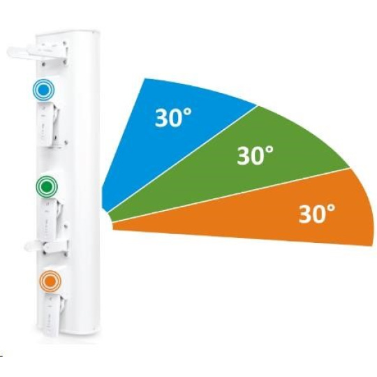 je to sektorová anténa pre 3 ks ľubovoľných jednotiek Rocket 5GHz. Vďaka vyžarovaciemu uhlu 3x 30° je táto anténa vhodná najmä do frekventovaných oblastí a na miesta, kde na stožiari nie je viac miesta na tri samostatné antény. V kombinácii s tromi jednotkami Rocket airPrism vytvoríte prístupový bod s veľmi vysokou priepustnosťou a stabilitou.