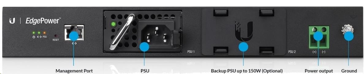edgepower je výkonné rackové napájacie riešenie s webovou správou vhodné na napájanie smerovačov a prepínačov EdgePoint. EdgePower obsahuje 2 šachty pre modulárne napájacie zdroje, ktoré možno zlúčiť prostredníctvom riadenia (max. výkon 300 W) alebo automaticky zálohovať (max. výkon 150 W). Napájacie zdroje sú hot-swap a možno ich vymeniť za chodu.
