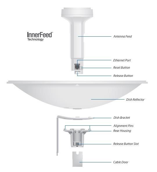 Popis produktu PowerBeam vychází z dřívější velmi úspěšné řady produktů NanoBridge. Nově obsahuje výkonější hardware a chytřejší konstrukci. Konstrukce byla maximálně zjednodušena, instalace v terénu je nyní rychlejší a pohodlnější, pro zajímavost bych zmínil tlačítko pro uvolnění hlavní jednotky (zářiče) což byl problém u starší generace. Uvnitř PowerBeamu se nachází výkonný MIPS procesor Atheros 74KC s frekvencí 560MHz, kterému sekunduje 64MB operační paměti typu DDR2 a 8MB Flash paměť. Síťový port podporuje 10/100 Ethernet a lze po něm jednotku napájet pasivním PoE 24V/0,5A (aktivní PoE dle 802.3af není podporováno). Teoretická maximální propustnost jednotky je 300Mbit (MCS15, 802.11n, 2x2 MIMO, při šířce kanálu 40MHz). InnerFeed technologie InnerFeed™ technologie integruje rádiovou část do zářiče od antény čímž odpadá potenciální ztráta na RF kabelu. Ekcelentní směrovost Tvar a velikost PowerBeamu nabízí nejvyšší možný zisk antény. Navíc díky ekcelentní směrovosti Vám bude PoweBeam skvěle pracovat i ve více zarušeném prostředí. airMAX Největší výhodou jakéhokoliv airMAX zařízení je vedle vysoké přenosové rychlosti díky standardu 802.11n využití časového multiplexu TDMA. Protokol TDMA airMAX umožňuje vynikající škálovatelnost a vysokou propustnost při zachování nízkých latencí v PtMP sítích. Obsah balení • Zařízení • PoE napájecí zdroj • Napájecí kabel • Parabola • Montážní kit k přichycení na stožár • Plastová část pro držení zářiče Technické parametry Bezdrátové vlastnosti Bezdrátové frekvence:2.4 GHz WiFi standardy:802.11b/g, airMAX, 802.11n Přenosová rychlost - 2.4GHz [Mb/s]:300 Vysílací výkon 2.4GHz [dBm]:28 Šifrování:WPA2 AES 2.4GHz MIMO:2 x 2 Typ antény:Vestavěná Počet vestavěných antén:2 Zisk antény [dBi]:18 Konektory a rozhraní Rychlost LAN:(1) 10/100Mbps Napájení Napájení přes PoE:24V DC Typy PoE:PoE-In (pouze) Max. spotřeba energie [W]:6 Fyzické charakteristiky Použití:Venkovní Tlačítka:Reset Provozní teplota [°C]:-40 až 70 Hmotnost [g]:1795 Šířka [mm]:400 Výška [mm]:400 Hloubka [mm]:289 Hardware CPU:MIPS 74Kc Frekvence CPU [MHz]:560 RAM [MB]:64 Software Operační mód:Klient, Repeater, AP Router, Access Point, Klient Router (wisp) Podpora IPv6:Transparentní (režim bridge) Výchozí IP adresa:192.168.1.20 Výchozí jméno a heslo:ubnt / ubnt.