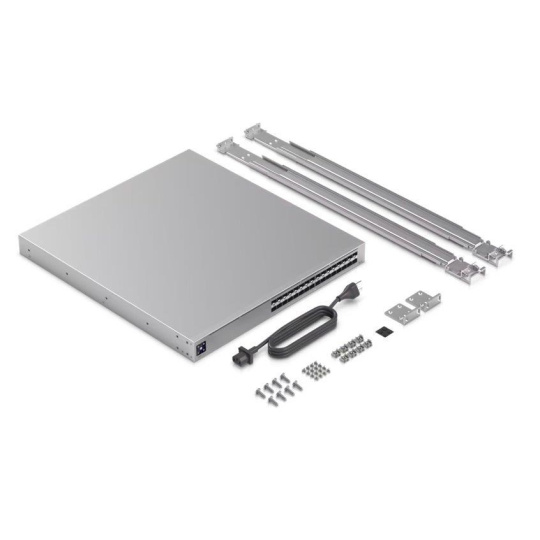 Popis produktu USW-Pro-XG-Aggregation je plně managovatelný L3 switch v 19" rackmount šasi s 32× SFP28 (podpora 1 G / 10 G / 25 Gbps) porty s funkcí Etherlighting, která Vám umožňuje barevně rozsvěcet porty pro zobrazení umístění portu, rychlosti/připojení a VLAN. Vybavený je 1,3" dotykovým displejem, který je schopný zobrazovat statistiky jednotlivých portů, chybových stavů, vytížení sítě a dalších informací. USW-Pro-XG-Aggregation je spravován pomocí UniFi Controlleru případně pomocí mobilní aplikace, což vám umožňuje snadno vytvářet, škálovat a monitorovat vaši podnikovou síť. Klíčové vlastnosti • (32) 1G / 10G / 25Gbps (SFP28) • Etherlighting - světelné zobrazení informací o portu • 1,6 Tbps switching capacity • Dotykový displej • Záložní napájení přes SmartPower RPS konektor • Správa pomocí UniFi Network server Správa přes UniFi Controller USW-Pro-XG-Aggregation nemá webový management ale je spravován centrálně pomocí UniFi Network serveru s podporou mobilní aplikace UniFi a nabízí rozsáhlou sadu pokročilých přepínacích protokolů a funkcí L2, včetně provozního režimu (přepínání, zrcadlení nebo agregace) na port. UniFi Network server a mobilní aplikace umožňují správcům konfigurovat a sledovat prakticky všechny funkce přepínače v grafickém uživatelském rozhraní odkudkoli. Redundantní napájení Tato generace switchů podporuje redundantní napájení přes speciální konektor k UniFi SmartPower jednotce v případě selhání primárního zdroje u switche. Obsah balení • Zařízení • Napájecí kabel • Úchyty do 19" racku Technické parametry Konektory a rozhraní Optické rozhraní:(32) 1/10/25Gbps Ostatní:Dotykový displej Napájení Typ napájení:Ze sítě (230V) Redundantní napájení:Ano Max. spotřeba energie [W]:200 Fyzické charakteristiky Provedení:Rackmount Ventilátory:Ano Šasi:Kovové Tlačítka:Reset Provozní teplota [°C]:-5 až 40 Šířka [mm]:442 Výška [mm]:44 Hloubka [mm]:480 Obecné Rychlost přepínání [Gbps]:1600 Tabulka MAC adres:32000 Rychlost předávání paketů [Mpps]:1200 Software Management:UniFi Network Funkce:VLAN, DHCP snooping, L3 Výchozí IP adresa:192.168.1.20, Dynamická z DHCP.