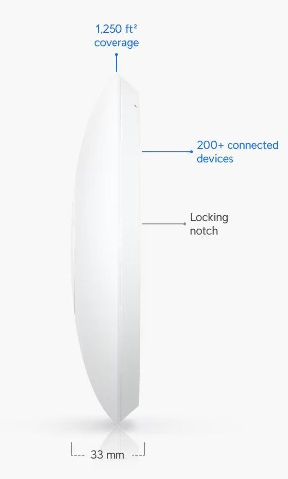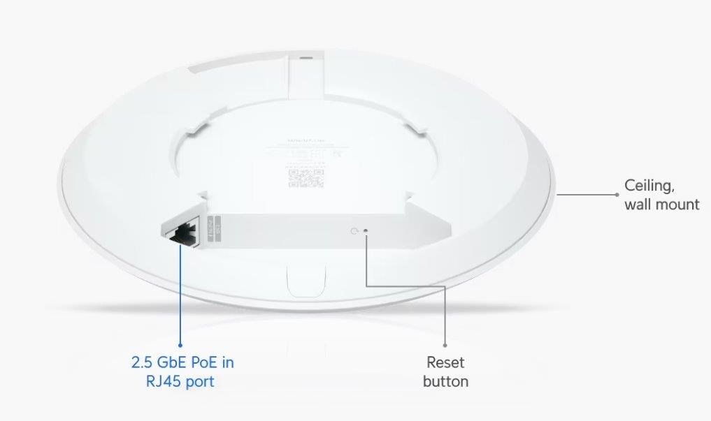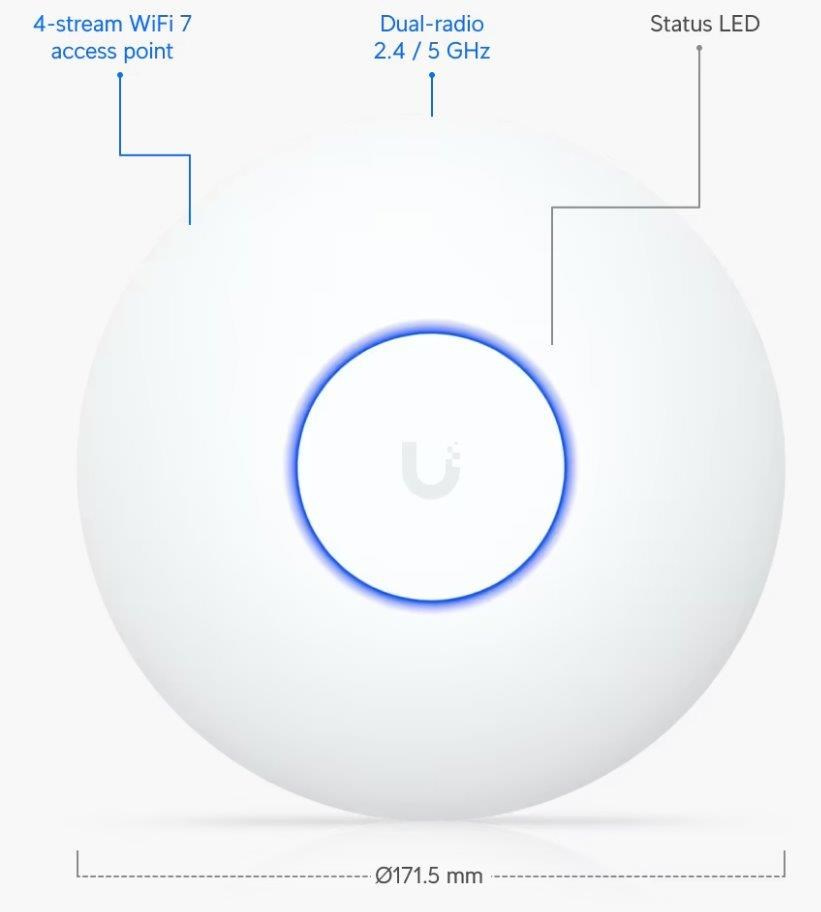 Popis produktu Ubiquiti U7-Lite je cenově nejdostupnější WiFi 7 UniFi AP. Jedná se o dual-band access point s rychlostí přenosu až 4,3Gbps v 5GHz pásmu a až 688 Mbps v pásmu 2,4GHz a pokročilým šifrováním WPA3. U7-Lite je určeno k WiFi pokrytí vaší domácnosti, kanceláře, hotelových prostor nebo skladu. Plná podpora roamingu zajišťuje plynulé předávání připojených klientů mezi jednotlivými AP. Pro připojení do sítě je AP vybaveno 2.5G ETH portem, který slouží i pro napájení pomocí PoE 802.3af nebo pasivním PoE v rozsahu 42,5-57V DC, PoE injektor není součástí balení. Výhody UniFi řešení • Roaming - přechod mezi jednotlivými AP bez výpadků • Wireless uplink – ideální pro místa, kam nelze přivést datový kabel • Až 8 SSID • Detailní statistiky provozu • Guest síť • Load balancing - udržování rovnoměné zátěže / přepínání klientů • Omezování rychlosti pro každé SSID Obsah balení • Zařízení • Kit k přichycení na strop • Sada šroubků Technické parametry Bezdrátové vlastnosti Bezdrátové frekvence:2.4 + 5 GHz (dual band) WiFi standardy:802.11n, 802.11a, 802.11ac, 802.11b/g, 802.11ax, 802.11be MU-MIMO:Ano Přenosová rychlost - 5GHz [Mb/s]:4300 Přenosová rychlost - 2.4GHz [Mb/s]:688 Vysílací výkon 2.4GHz [dBm]:23 Vysílací výkon 5GHz [dBm]:24 Šifrování:WPA, WPA2, WPA3 2.4GHz MIMO:2 x 2 5GHz MIMO:2 x 2 Typ antény:Vestavěná Roaming:Ano Zisk antény [dBi]:4, 5 Konektory a rozhraní Rychlost LAN:(1) 100/1000/2500Mbps Gigabit LAN:Ano Napájení Napájení přes PoE:802.3af, 42 .. 57V DC Typy PoE:PoE-In (pouze) Max. spotřeba energie [W]:13 Fyzické charakteristiky Použití:Vnitřní Tlačítka:Reset Provozní teplota [°C]:-30 až 40 Hmotnost [g]:313 Šířka [mm]:172 Výška [mm]:172 Hloubka [mm]:33 Software Operační mód:Access Point.