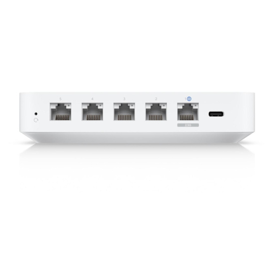 Popis produktu UCG-Ultra je všestranné zařízení ze série UniFi Cloud Gateway. Router disponuje (1) WAN 1/2.5Gbps portem a (4) LAN 1Gbps porty (1 s možností konfigurace LAN/WAN). Kompaktní, ale výkonné provedení tak podporuje funkci multi-WAN včetně možnosti load balancing, nechybí podpora IDS/IPS. Router má implementovanou podporu různých typů VPN, včetně site-to-site VPN. Pomocí integrované aplikace UniFi Network dokážete spravovat až 30+ UniFi zařízení a obsloužit až 300+ připojených klientských zařízení. Nechybí stavový displej o velikosti 0,96". Napájení je řešeno prostřednictvím USB-C konektoru, napájecí adaptér je součástí balení. Klíčové vlastnosti • 1Gbps routing s podporou IDS/IPS • Integrovaná aplikace UniFi Network • Multi-WAN + load balancing • 0,96" LCM displej • Napájení USB-C Obsah balení • Zařízení • Patch kabel • Napájecí adaptér USB-C (5V/3A) • Technické parametry • Konektory a rozhraní • Rychlosti WAN:(1) 100/1000/2500Mbps • Možnost více WAN:Ano • Rychlost LAN:(3) 10/100/1000Mbps + (1) 10/100/1000Mbps LAN/WAN • Gigabit LAN:Ano • Napájení • Typ napájení:USB-C • Max. spotřeba energie [W]:6,2 • Napájení přes konektor/svorkovnici:5V / 3A • Fyzické charakteristiky • Provedení:Desktop • Šasi:Plastové • Tlačítka:Reset • Provozní teplota [°C]:-10 až 40 • Šířka [mm]:142 • Výška [mm]:30 • Hloubka [mm]:128 • Hardware • RAM [MB]:3072 • Obecné • Propustnost NAT [Mb/s]:1000 • Software • Podporované VPN:L2TP, IPSec, OpenVPN, WireGuard • Management:UniFi controller • Podpora IPv6:Ano.