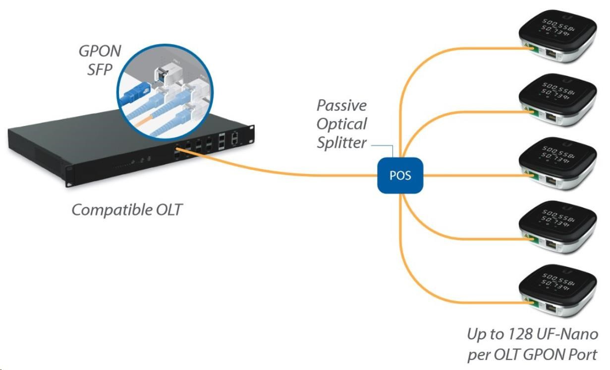 uF-NANO je kompaktný, ale robustne skonštruovaný koncový bod GPON s LED displejom, ktorý zobrazuje aktuálnu priepustnosť/IP adresu a stav ethernetového a optického spojenia. Rýchlosť linky PON je maximálna (Rx/Tx) 2.488 / 1.244 Gb/s, rýchlosť siete Ethernet je 10/100/1000 Mb/s a samotné zariadenie je možné napájať len prostredníctvom 24V pasívneho adaptéra PoE. Zariadenie ako také sa používa na konverziu metalického pripojenia na optické a dokáže pracovať iba v režime Bridge, nie v režime Router.