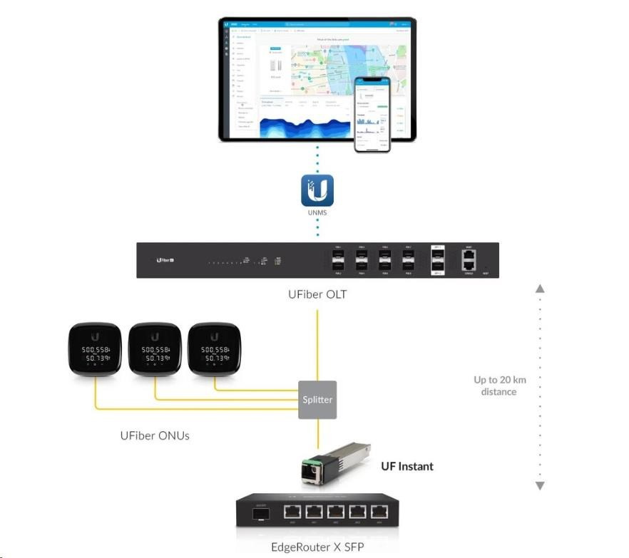 uF-Instant je modul GPON SFP s jedným konektorom SC a je určený na použitie so zariadeniami Ubiquiti EdgeSwitch, EdgeRouter, UniFi Switch a USG alebo s produktmi UF-AE a F-POE-G2. Modul je určený pre trasy dlhé až 20 km a dokáže komunikovať s jednotkou OLT asymetrickou rýchlosťou 2.4 Gb/s preberanie a 1.nahrávanie 2 Gb/s.