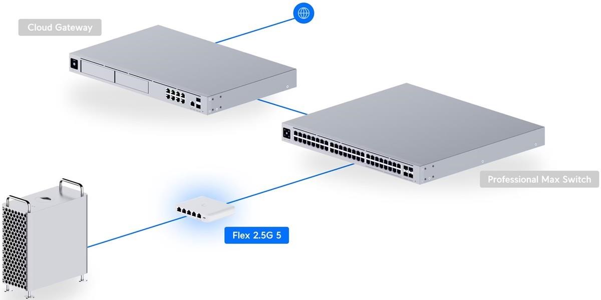 Popis produktu Switch Flex Mini 2.5G od Ubiquiti je kompaktní přepínač určený pro rozšíření sítě v domácích i kancelářských prostředích. Nabízí pět 2.5 Gigabitových portů, které umožňují snadnou integraci zařízení s vyššími přenosovými rychlostmi, jako jsou moderní přístupové body, servery nebo NAS úložiště. Switch podporuje správu prostřednictvím platformy UniFi Controller, což usnadňuje jeho konfiguraci a dohled nad sítí. Jednou z jeho klíčových funkcí je podpora napájení přes ethernet, což znamená, že zařízení lze napájet přímo přes síťový kabel pomocí PoE vstupu na prvním portu (802.3af/at), případně pak pomocí přiloženého USB-C adaptéru. Svým minimalistickým designem je ideální pro umístění na pracovním stole nebo třeba montáž na stěnu. Je plně kompatibilní se systémy UniFi a umožňuje snadné škálování podle potřeby. Obsah balení • Zařízení • Napájecí adaptér USB-C (5V / 1A)  Technické parametry Konektory a rozhraní Rychlost LAN:(4) 10/100/1000/2500Mbps Sériový port:RJ45 Napájení Typ napájení:PoE, USB-C Typy PoE:PoE-In (pouze) Max. spotřeba energie [W]:6,4 Napájení přes konektor/svorkovnici:5V / 1A Fyzické charakteristiky Provedení:Desktop Šasi:Plastové Tlačítka:Reset Provozní teplota [°C]:-20 až 45 Šířka [mm]:90 Výška [mm]:117 Hloubka [mm]:21 Software Management:UniFi Network.