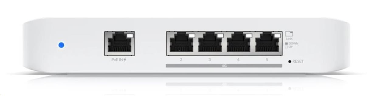 UniFi Switch Flex XG od spoločnosti Ubiquiti Networks je plne spravovateľný L2 UniFi Switch so 4 10Gb ethernetovými portami a 1 gigabitovým LAN s podporou PoE IN (802.3af). Veľmi kompaktný dizajn stolového počítača bez ventilátora dopĺňajú informačné LED diódy indikujúce stav linky. Prepínač je možné napájať cez prvý port pomocou PoE IN alebo cez USB-C na zadnej strane.