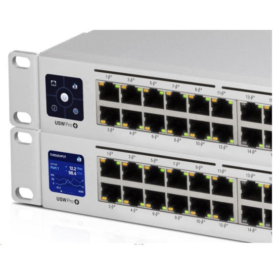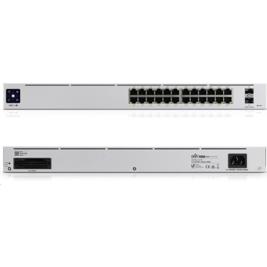 Dvojica portov 10G SFP+ so spätnou kompatibilitou s 1G SFP slúži ako Uplink. V prípade výpadku napájania alebo interného výpadku napájania možno prepínač pripojiť k záložnému systému UniFi SmartPower, ktorý môže podporovať až 6 podporovaných zariadení.