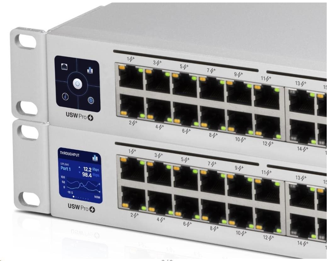 Na dotykovom displeji sa okamžite zobrazujú najdôležitejšie informácie, ako sú chybové stavy, varovania, štatistiky portov, spotreba pripojených zariadení, zaťaženie siete a ďalšie.