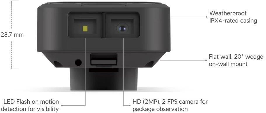 Popis produktu UVC-G4 Doorbell Pro PoE Kit je sada vnitřního zvonku a venkovního tlačítkového videozvonku s přenosem dat pouze po ethernetu. Venkovní jednotka je vybavena přední primární 5MP kamerou a spodní sekundární 8MP kamerou na zobrazení toho, co se nachází na rohožce přede dveřmi. Hlavní kamera domovního zvonku je vybavena IR LED pro poskytování lepšího nočního vidění, které v kombinaci se spodním osvětlením zajišťuje spolehlivě jasné sledování po celý den. Zvonek je také vybaven funkcí potlačení ozvěny a obousměrným audiem pro komunikaci s návštěvníky. Navíc má programovatelný displej, který umožňuje dávat upozornění nebo pokyny k doručení kurýrům. Sada je navržená jako výkonný plug-and-play bezpečnostní nástroj a lze jej nastavit a nakonfigurovat během několika minut pomocí aplikace UniFi Protect. Klíčové vlastnosti Obě kamery mají stream 1080p HD při 30 fps Gigabit LAN s 802.3af PoE (1) 5MP hlavní kamera s IR osvětlením [1600x1200 (2MP), 30 fps] (1) 8MP spodní kamera bez IR [1600x1200 (2MP), 2 fps] Obousměrné audio s potlačením ozvěny Vestavěné verandové světlo, které osvětlí objekty až do vzdálenosti 2 metrů Senzor pohybu Stupeň krytí IPX4, kryt odolný proti povětrnostním vlivům Programovatelný displej Snadné nastavení pomocí aplikace UniFi Protect Obsah balení Zařízení (venkovní jednotka) Zařízení (vnitřní jednotka) (5) Montážní držák Příchytový materiál Technické parametry Kamera Přísvit:IR Dosah přísvitu [m]:2 Pozorovací úhel [°]:138 Obraz Rozlišení:5MP Max. rozlišení [pixely]:1600 x 1200 (UXGA) Konektory a rozhraní Audio:Mikrofon, Reproduktor Ostatní:LCD displej Napájení Napájení přes PoE:802.3af, 37 .. 57V DC Typ napájení:PoE Max. spotřeba energie [W]:7 Fyzické charakteristiky Stupeň krytí:IPX4 Provozní teplota [°C]:-30 až 40 Hmotnost [g]:264 Šířka [mm]:52 Výška [mm]:161 Hloubka [mm]:35.