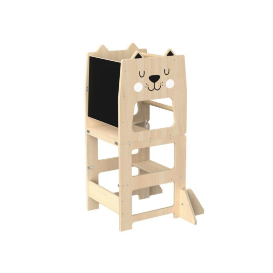 - Neutrálne farebné prevedenie - učiaaca veža vyrobená z preglejky, ošetrená transparentným vodou riediteľným lakom a farbami, je praktickým pomocníkom aj krásnym kúskom detského nábytku do domácnosti.