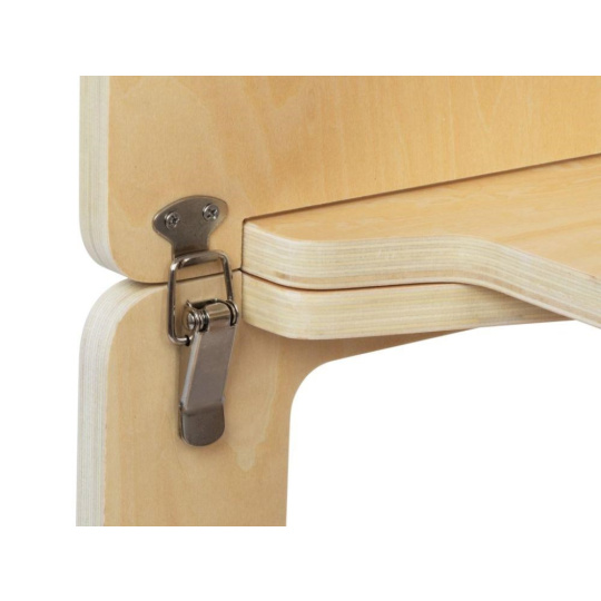 - Zapuštené pánty - pánty, ktoré umožňujú premeniť učiaacu vežu na set detského nábytku (stolička s stolíkom), sú zapustené a nevyčnievajú.