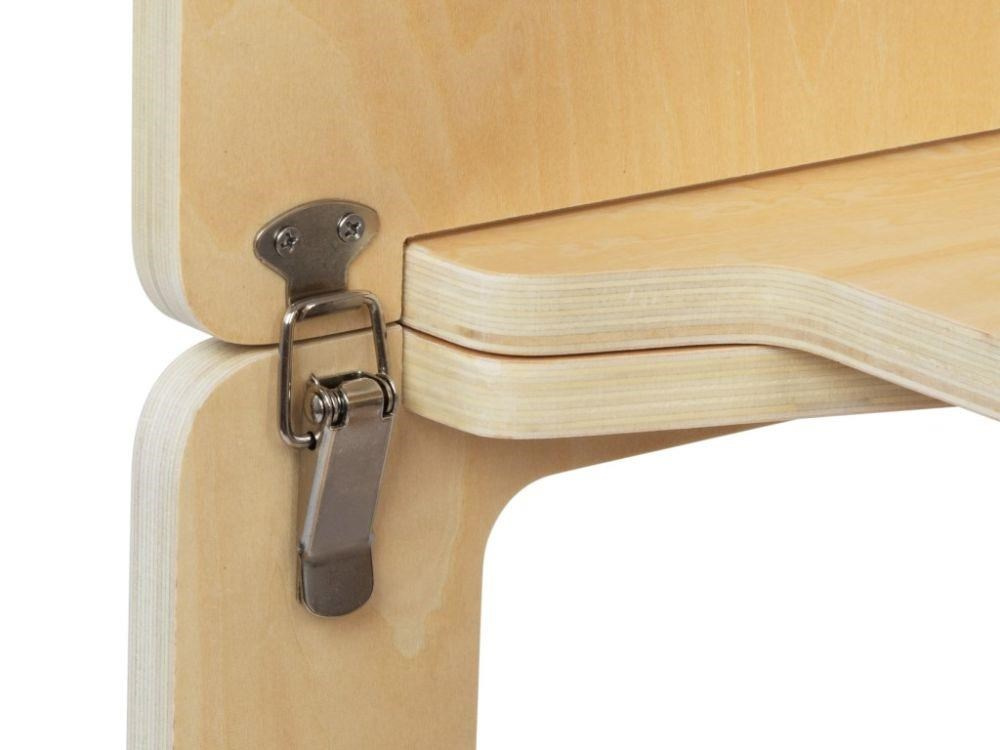 - Zapuštené pánty - pánty, ktoré umožňujú premeniť učiaacu vežu na set detského nábytku (stolička s stolíkom), sú zapustené a nevyčnievajú.