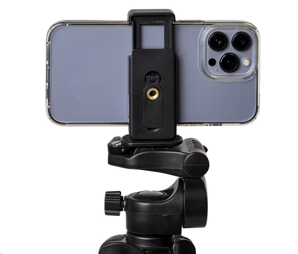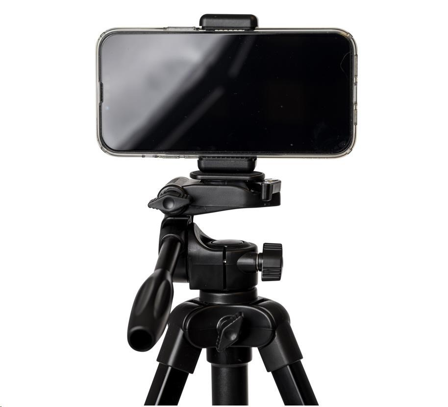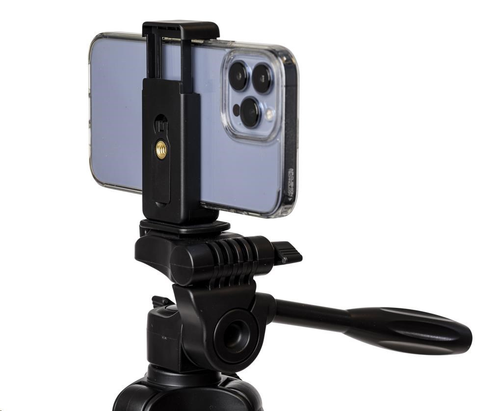 Ľahký hliníkový statív s trojcestnou otočnou hlavou a držiakom na smartfón. Dosahuje maximálnu výšku 123 cm a unesie až 2 kg. Tento statív je ideálny pre tých, ktorí používajú menší fotoaparát alebo smartfón