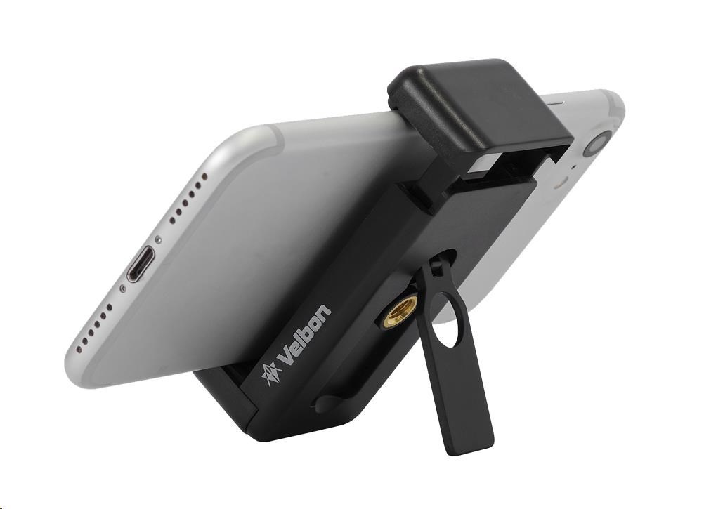 Malý flexibilný statív od spoločnosti Velbon so zloženou dĺžkou 43,5 cm a maximálnou dĺžkou 123 cm. Statív sa dodáva s namontovanou otočnou a naklápacou hlavou a držiakom na smartfón. Hlava umožňuje plynulé otáčanie o 360° a manipuláciu s ňou, pričom sa dá ľahko prepnúť do režimu na výšku.