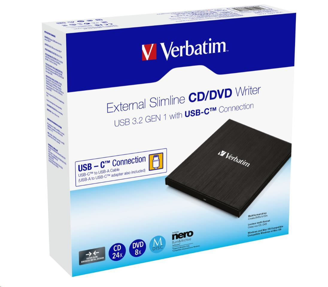 VERBATIM externá mechanika DVD-RW Rewriter USB-C, čierna