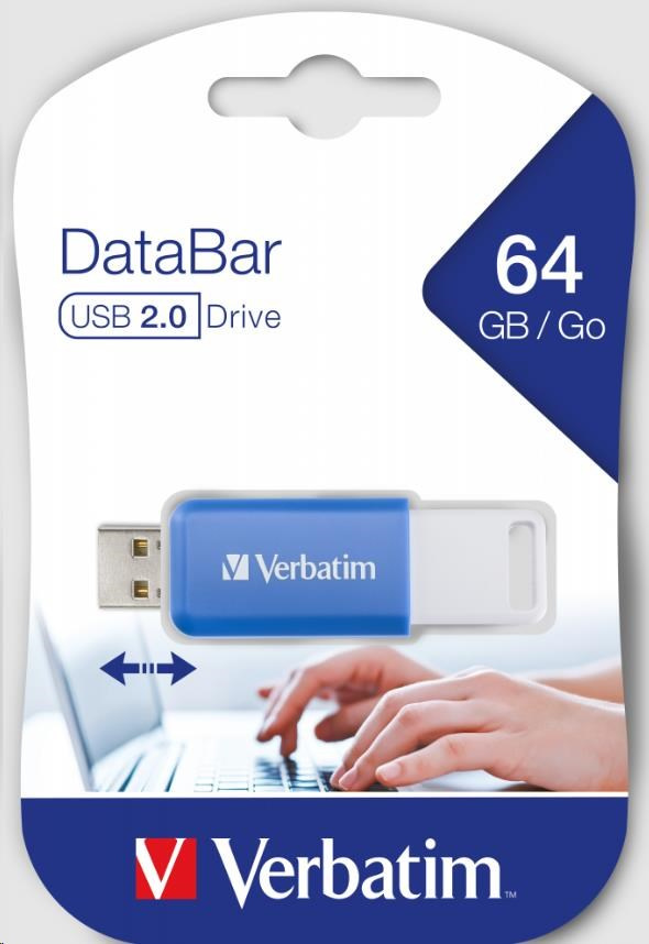 VERBATIM Flash Disk 64GB DataBar USB 2.0 Disk, modrý