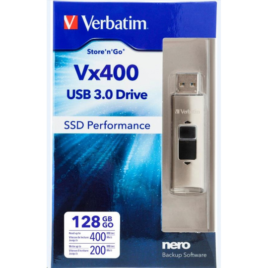 VERBATIM Flash disk 128 GB Store 'n' Go, SSD Vx400, USB 3.0, strieborná