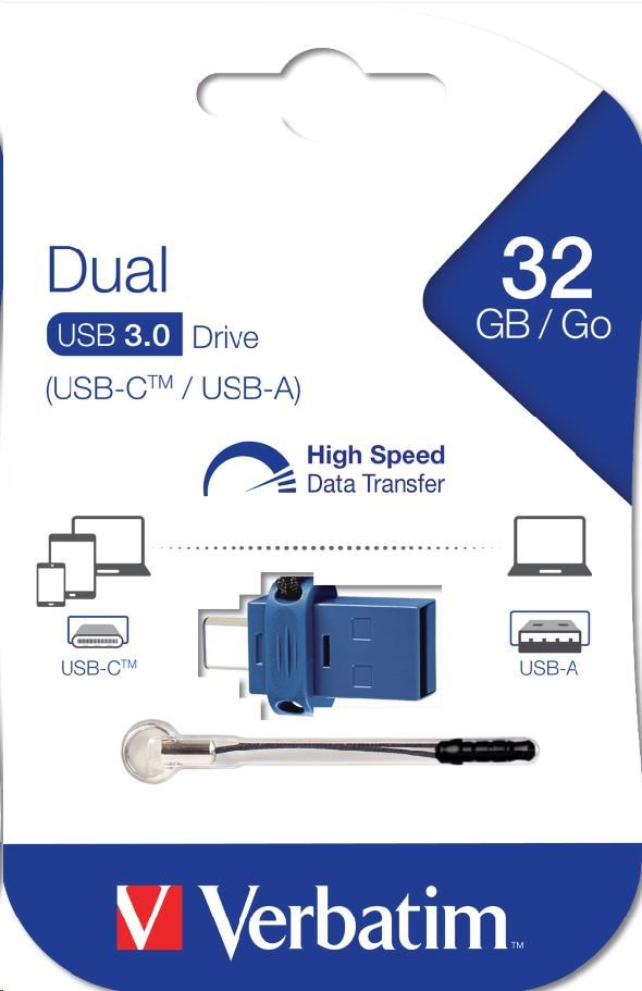 VERBATIM Flash disk 32 GB Store 'n' Go Dual Drive USB 3.0/USB Type-C, modrá