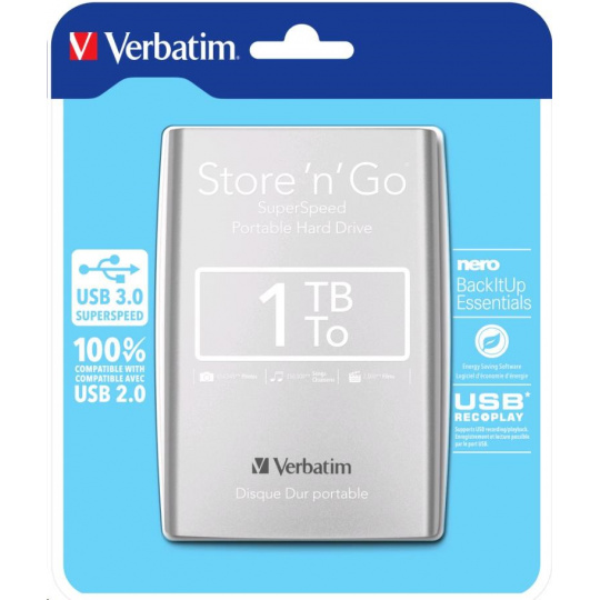 VERBATIM HDD 2.5" 1TB Store 'n' Go USB 3.0 , striebro