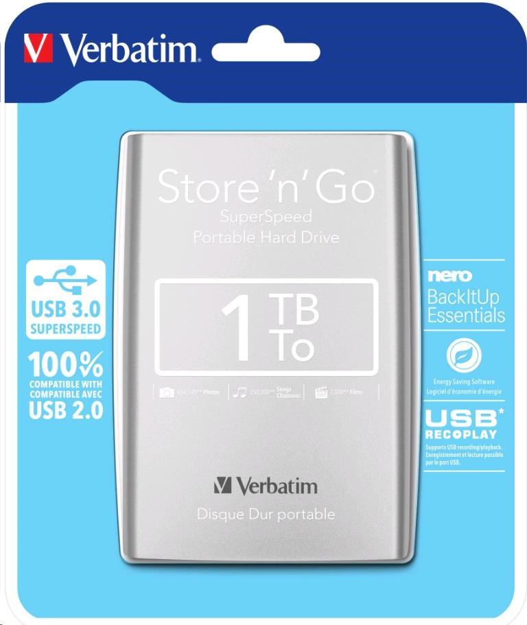 VERBATIM HDD 2.5" 1TB Store 'n' Go USB 3.0 , striebro