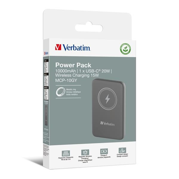 .VERBATIM Powerbanka Charge 'n' Go, Magnetická, 10000 mAh, USB-C, Šedá