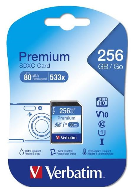 Karta VERBATIM SDXC 256 GB Class 10, UHS-1 (R:80/W:10 MB/s)