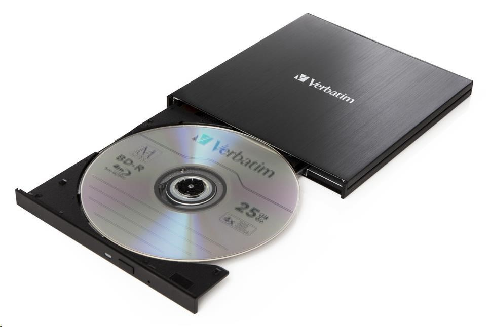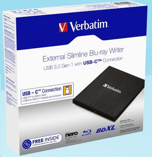 .VERBATIM externí mechanika Slimline Blu-ray Writer (USB-C, USB 3.0) Zdarma BR Disc 25GB (CD DVD BD + NERO