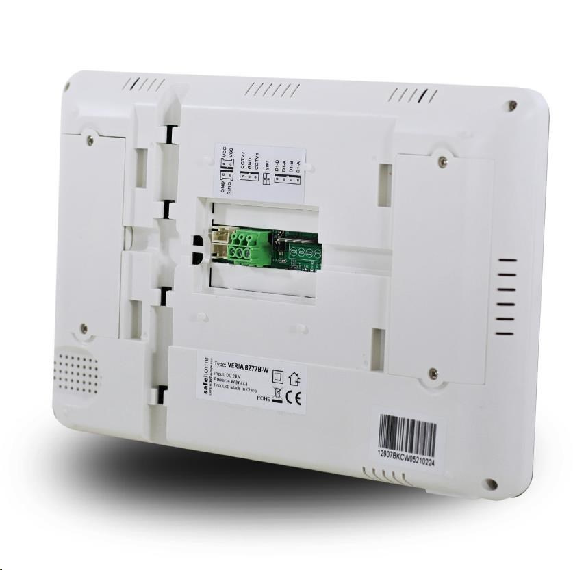 Monitor s dotykovou LCD obrazovkou pre sústavy domových videotelefonov VERIA séria 2-WIRE. Vďaka modernej technológii umožňuje len 2vodičové prepojenie s vstupnou stanicou alebo ďalším monitorom. Užívatelia majú možnosť pripojenia dvoch CCTV kamier (kamery je možné zobraziť v app TUYA po upgrade fw na najnovšiu verziu).