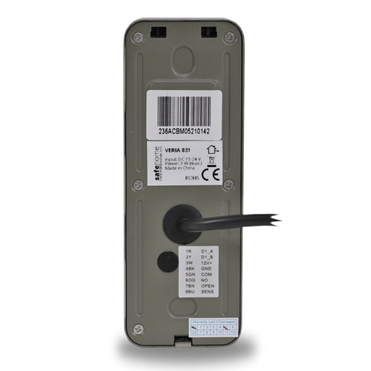 Vstupná farebná kamerová jednotka videotelefonu VERIA 831RFID v elegantnom anti-vandal prevedení je určená pre 2-vodičové sady videotelefonov VERIA 2-WIRE.